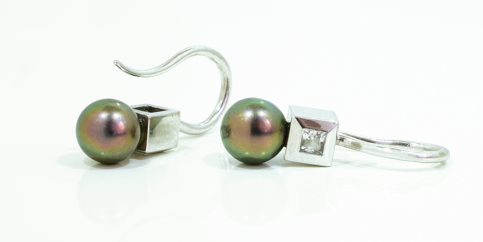 Dámské náušnice z bílého zlata s perlami a čtvercovým zirkonem.