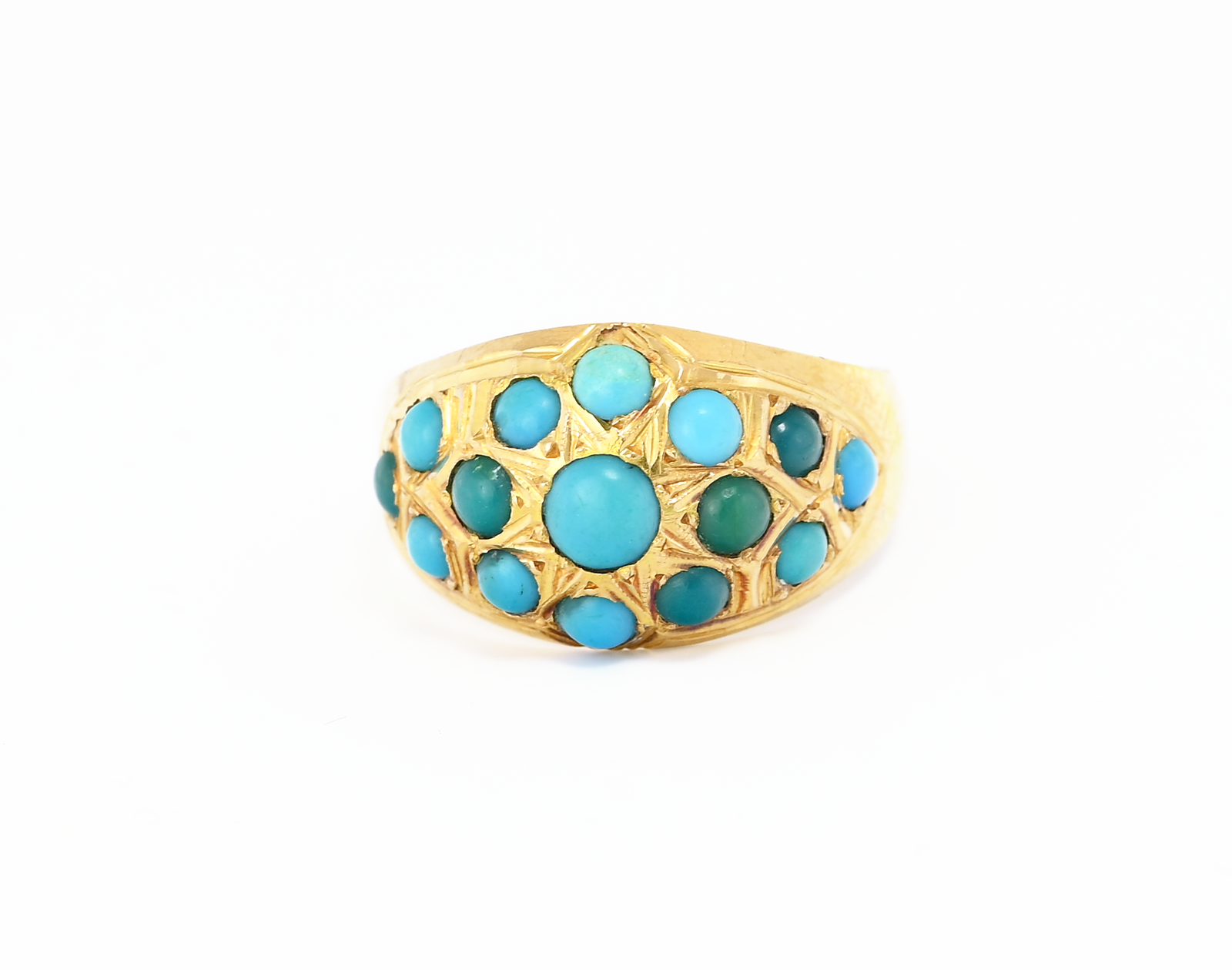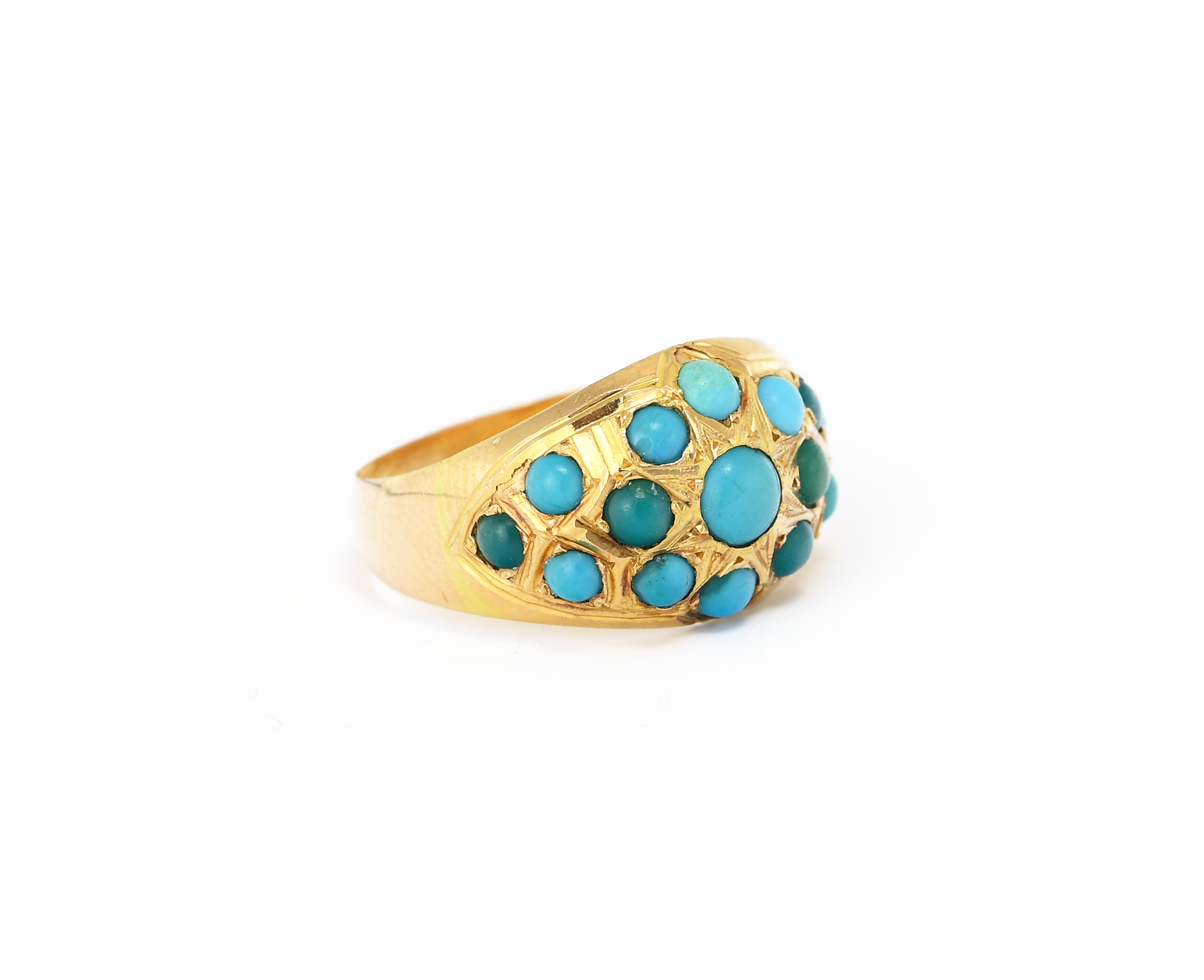 Dámský prsten osázený tyrkysy v 18kt zlatě