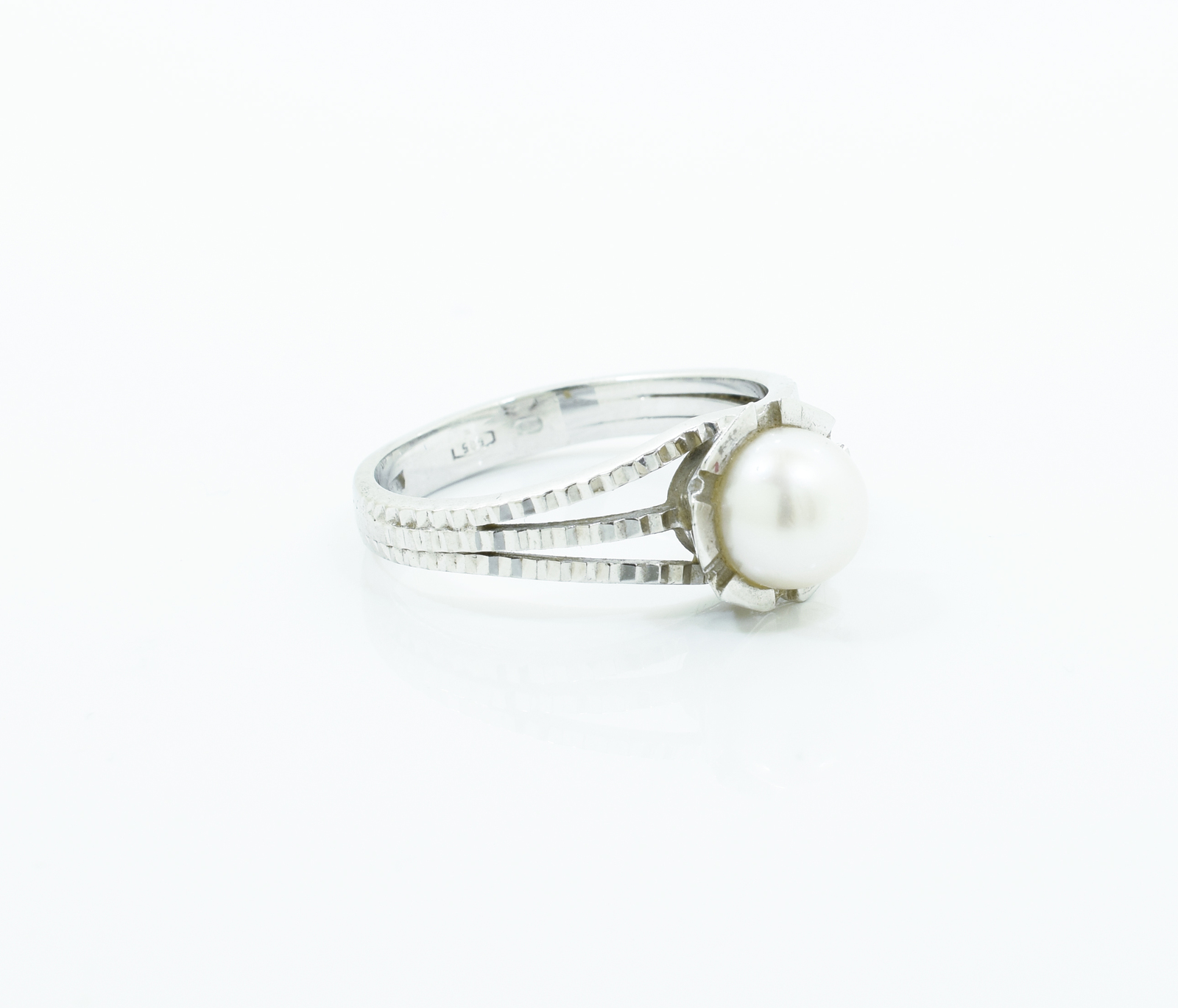 Dámský prsten s perlou v bílém zlatě. 4,05g