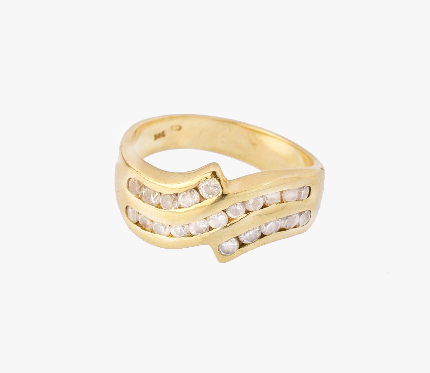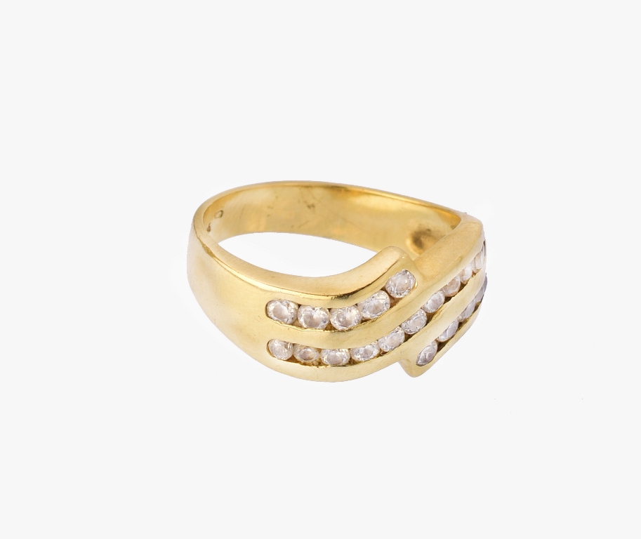 Dámský prsten ze žlutého zlata zdobený mnoha zirkony