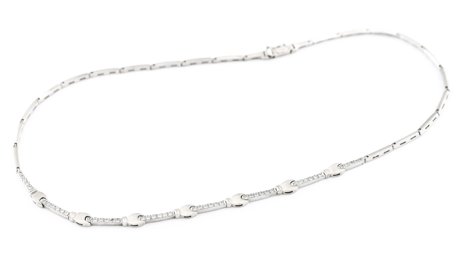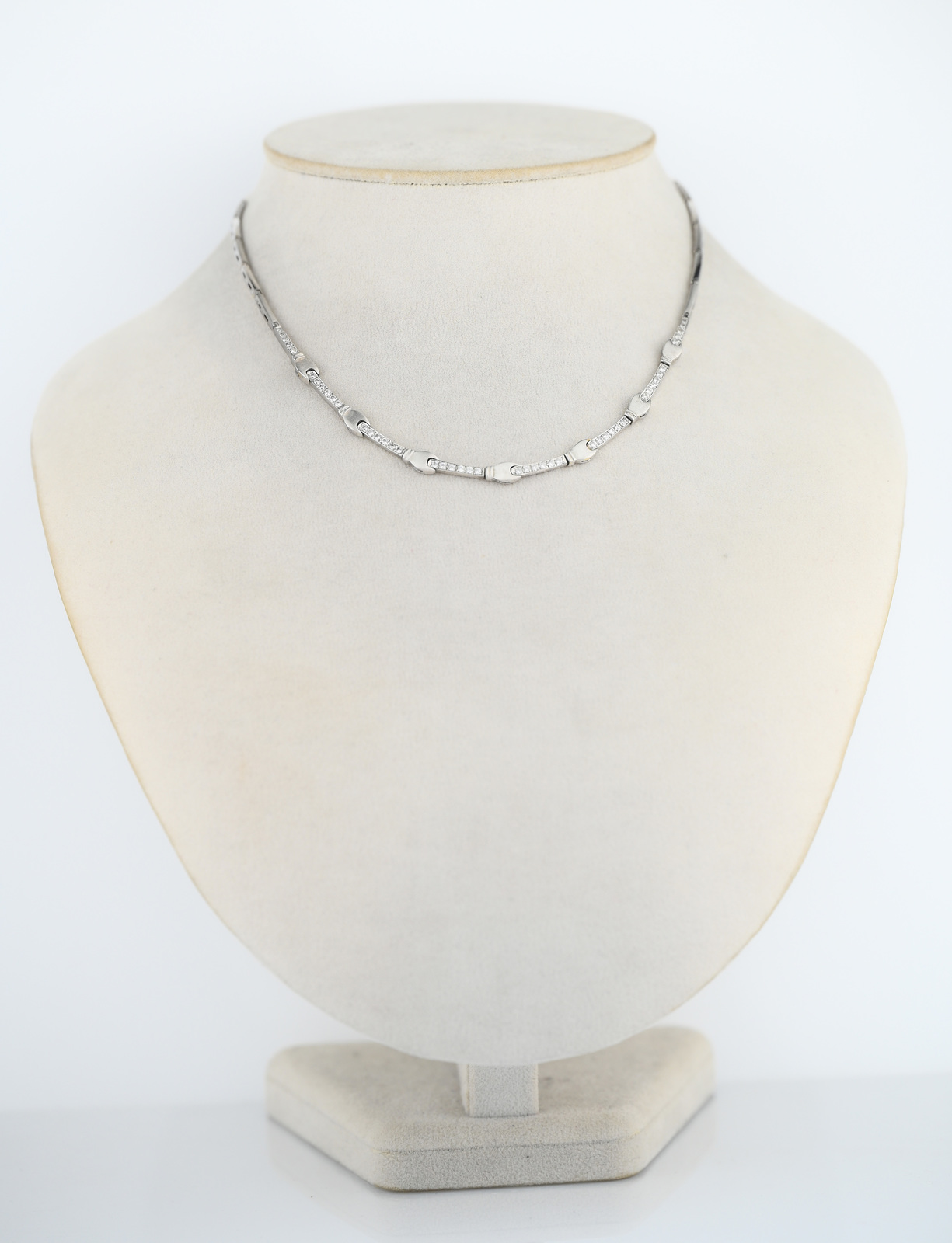 Náhrdelník, z bílého zlata, zdobený zirkony.