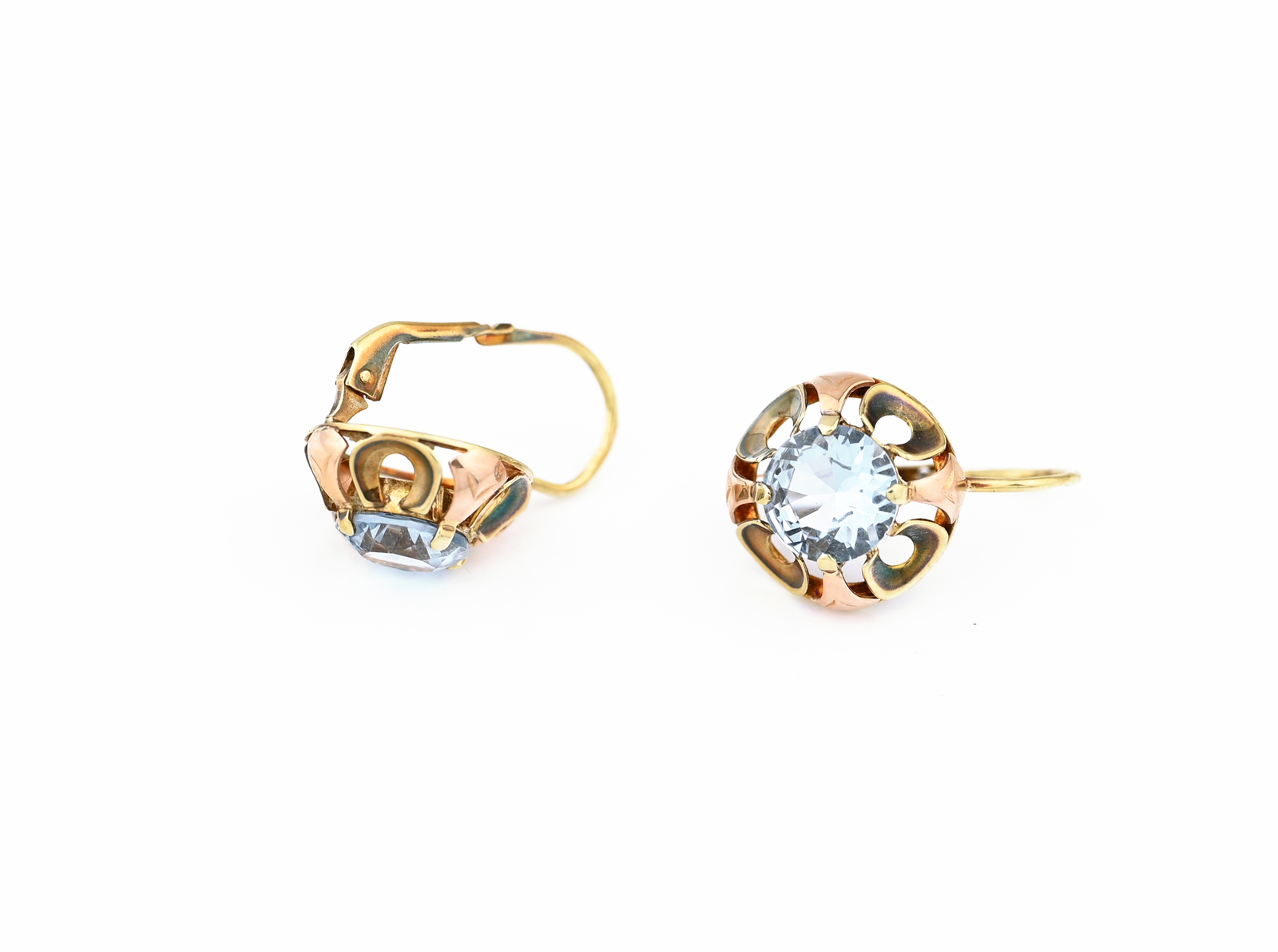 Náušnice, kombinované zlato, zdobené akvamaríny.