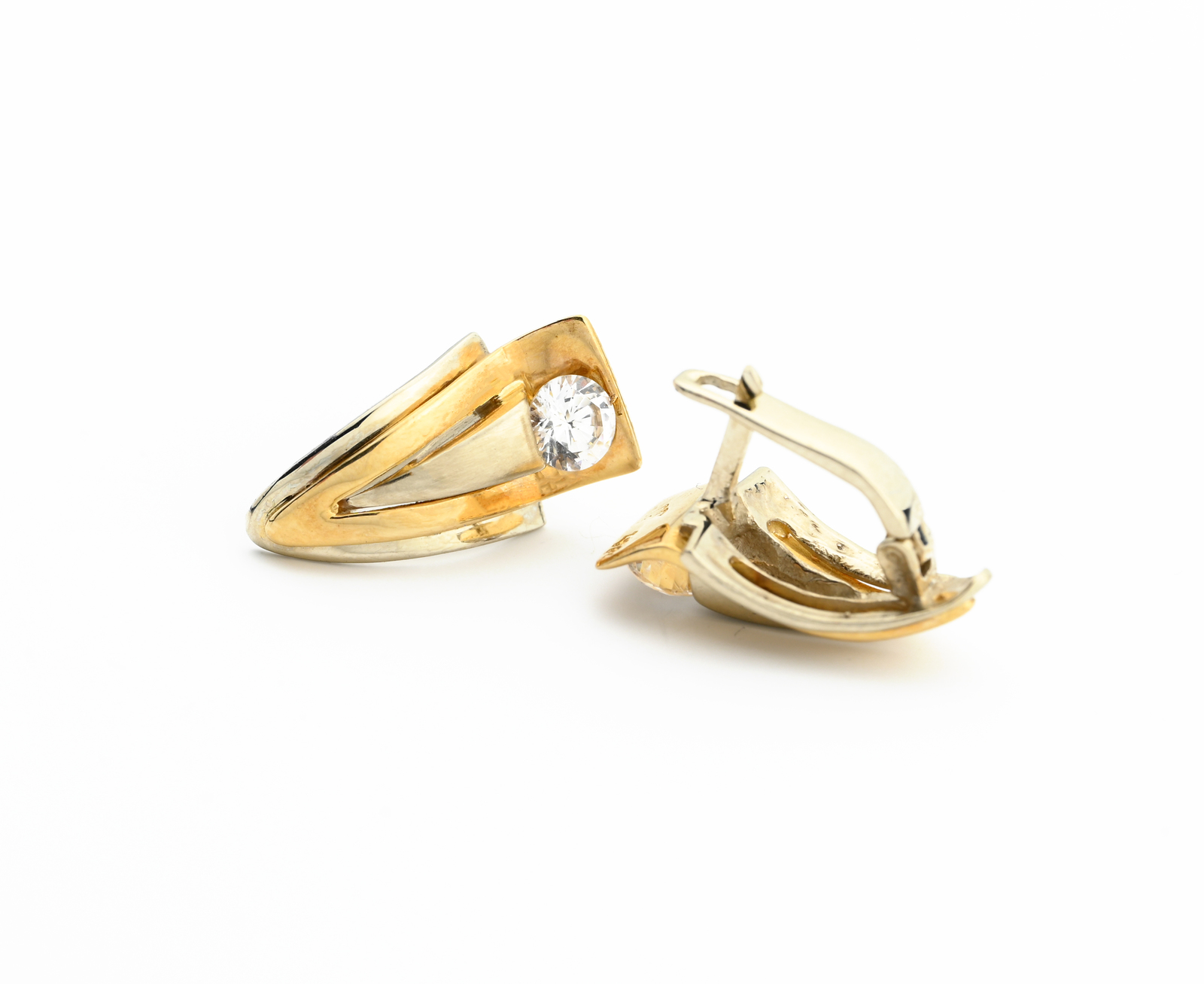 Náušnice v kombinaci žlutého a bílého zlata zdobené zirkonem
