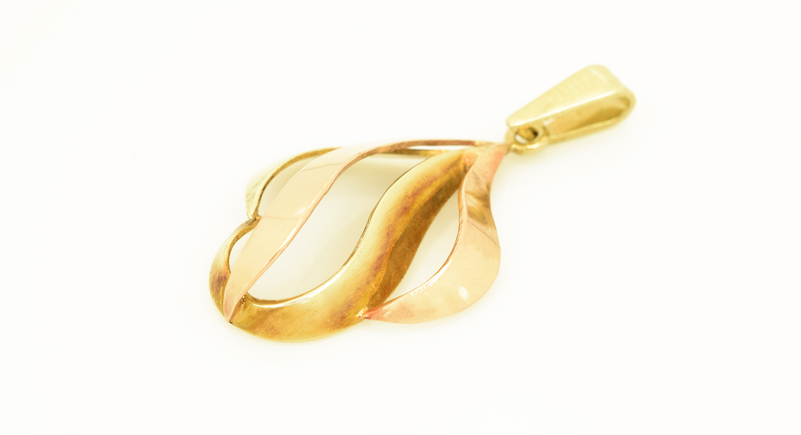 Přívěšek v kombinaci červeného a žlutého zlata ve tvaru kapky