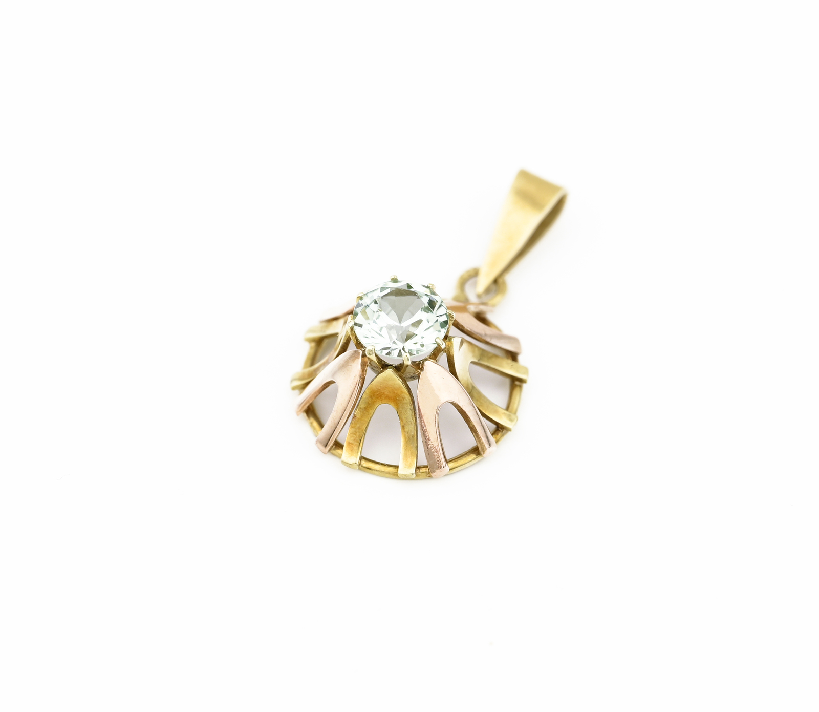 Přívěšek, kombinované zlato, korunka se zeleným kamenem.