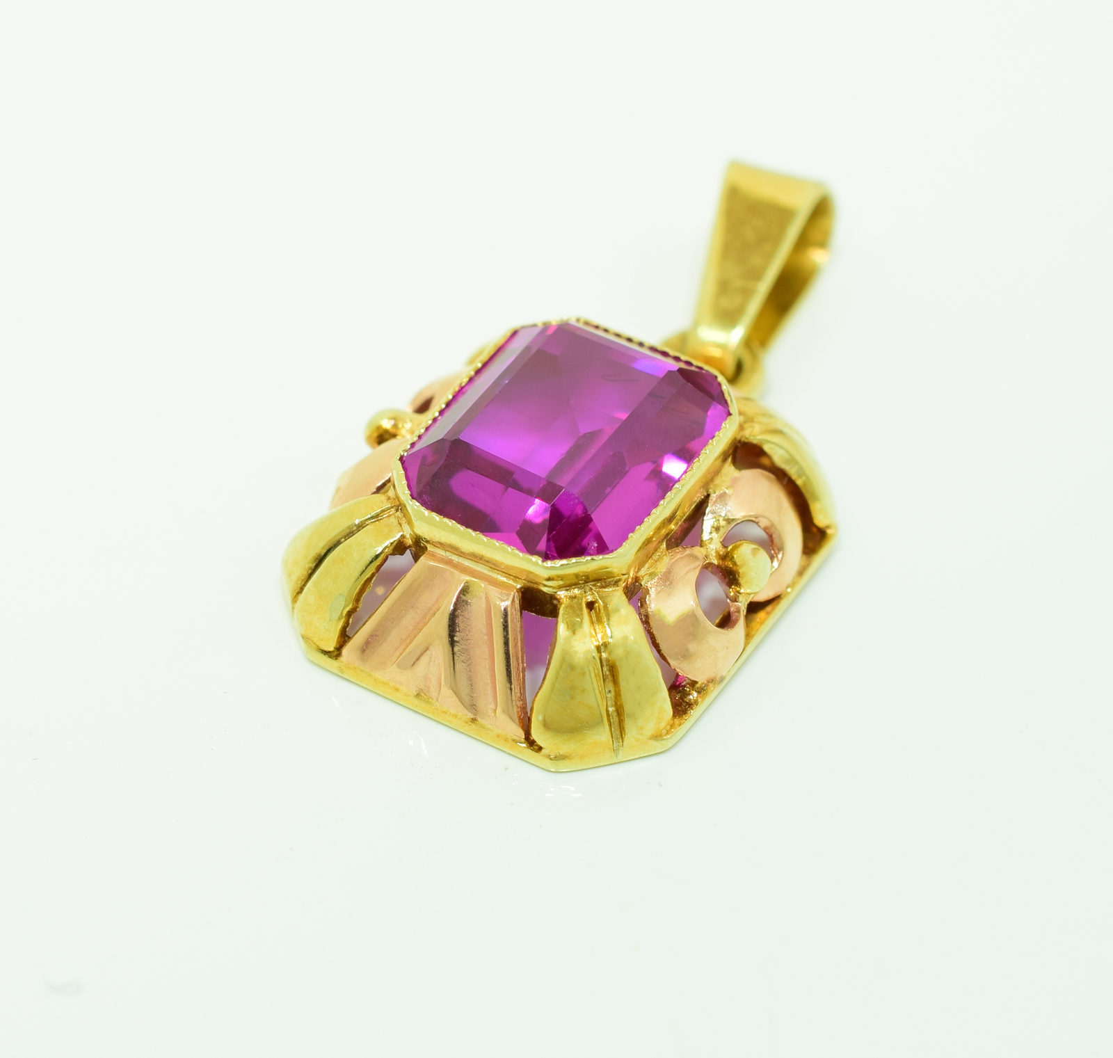 Přívěšek v kombinaci červeného a žlutého zlata zdobený rubínem