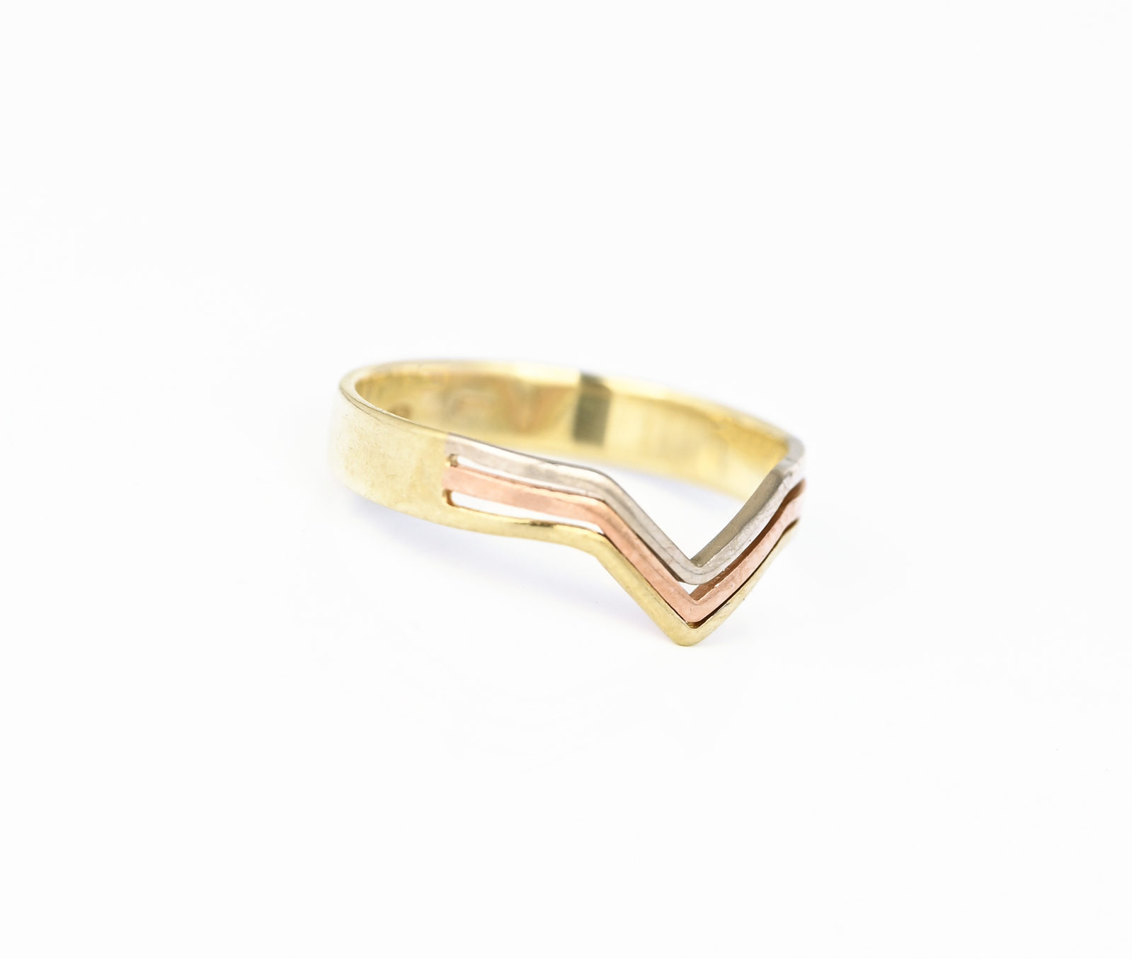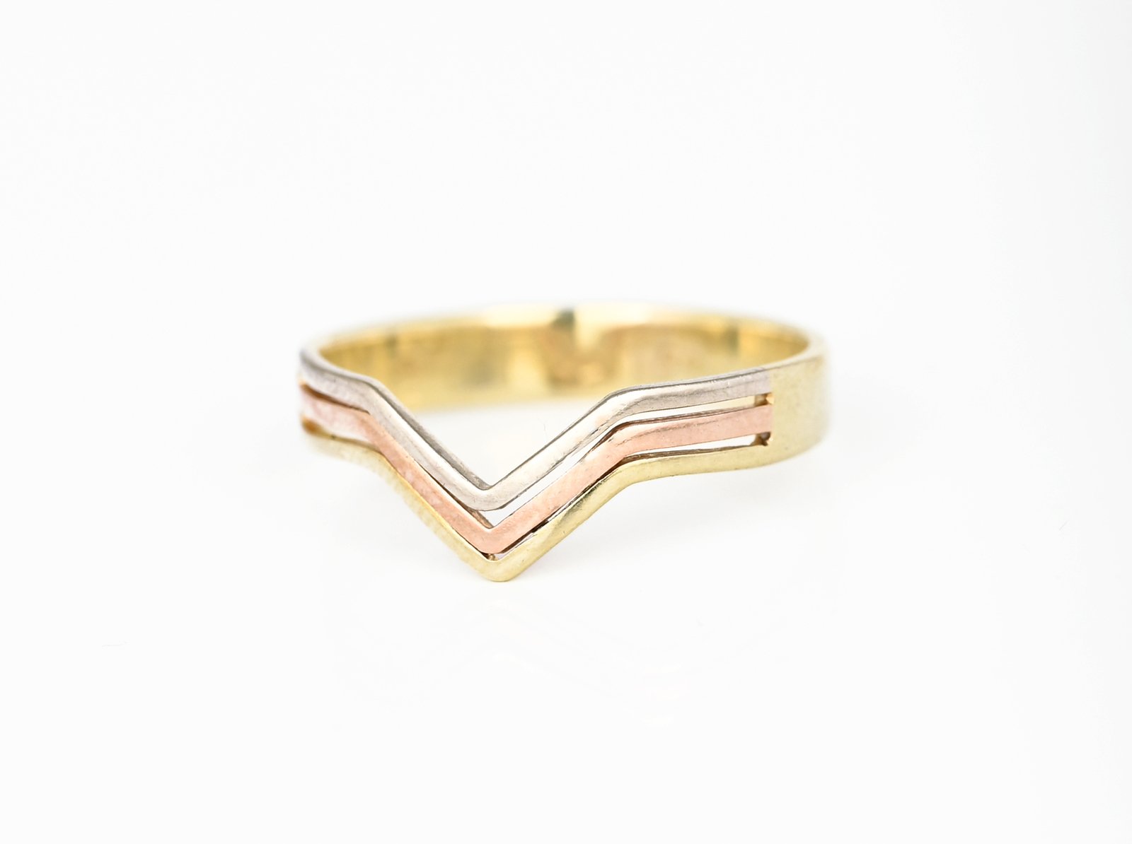 Prsten motiv špičky v kombinaci žlutého, bílého a červeného zlata