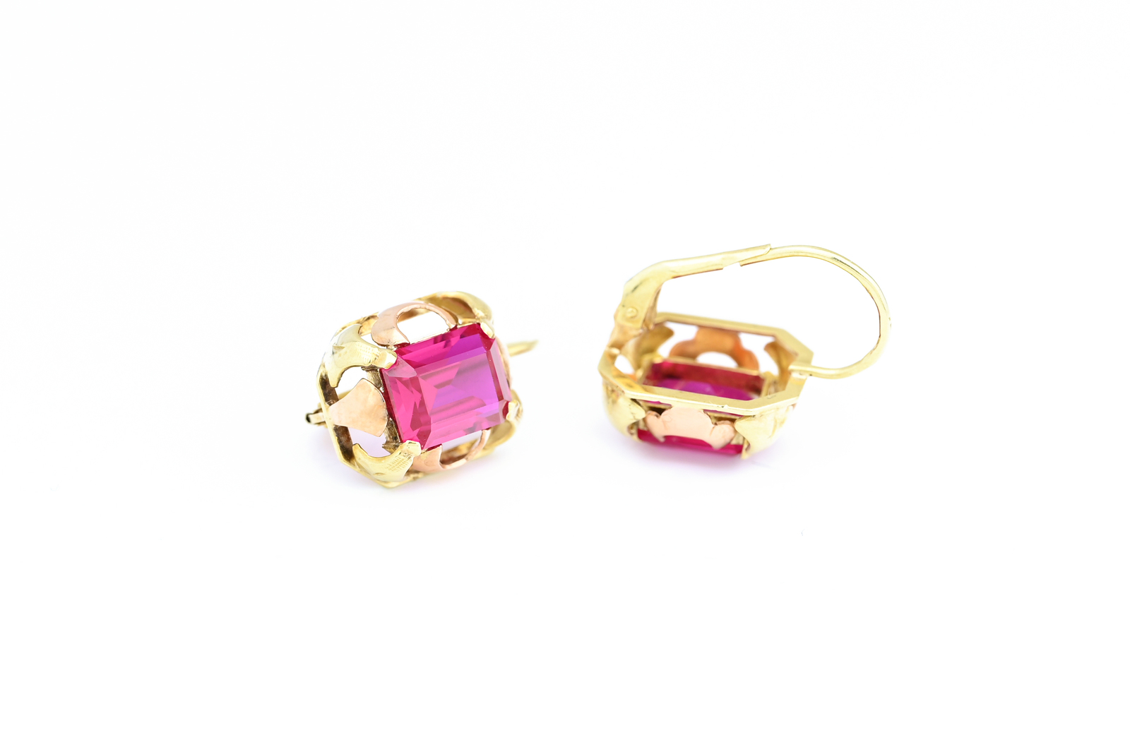 Zl. náušnice zdobené rubíny