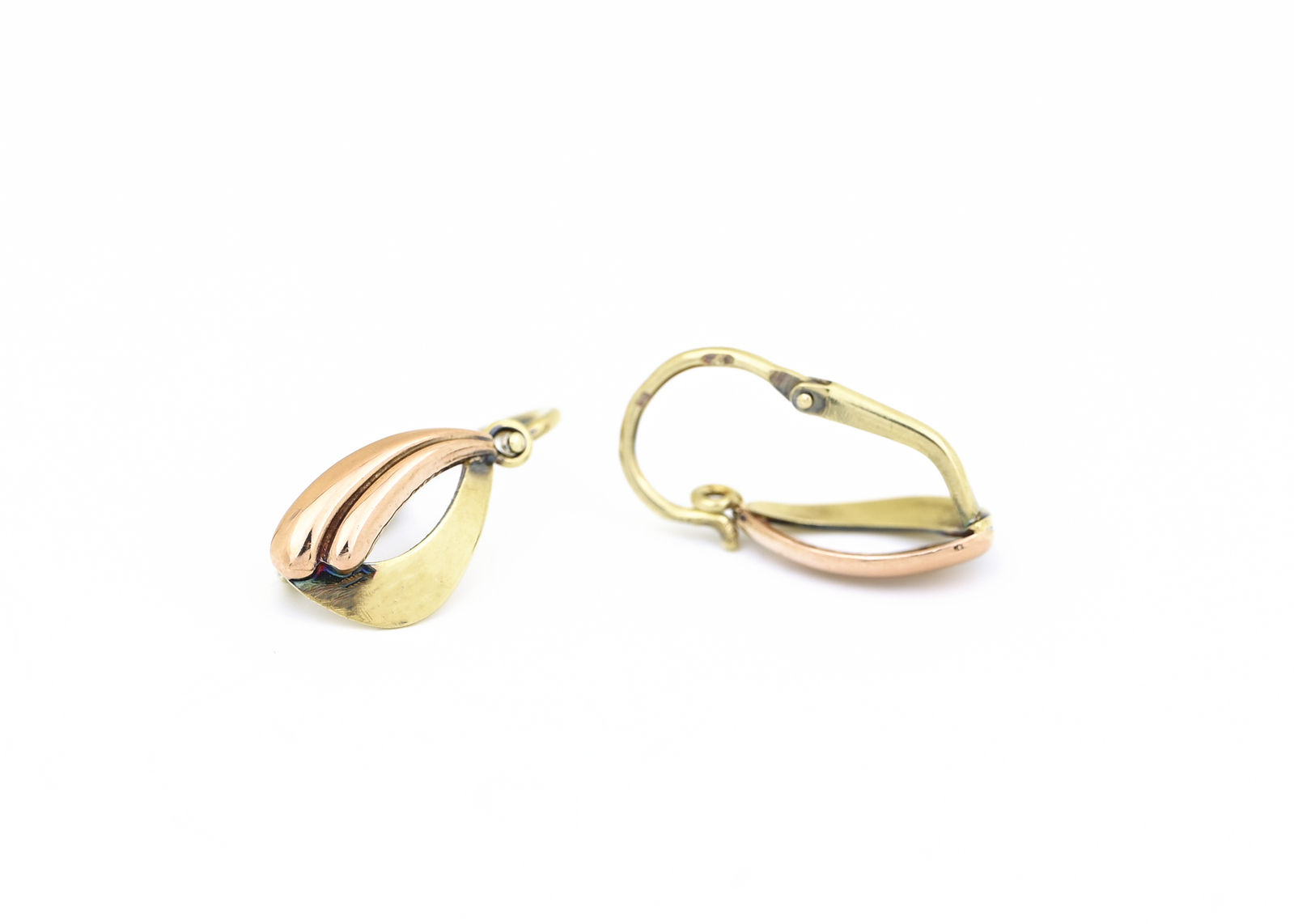 Zlaté náušnice, motiv kapky, kombinované zlato.