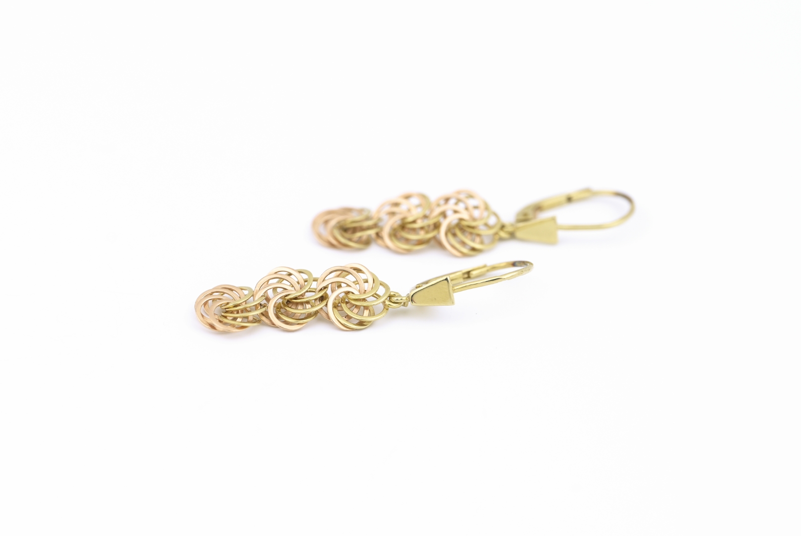 Zlaté náušnice, propletené kroužky.