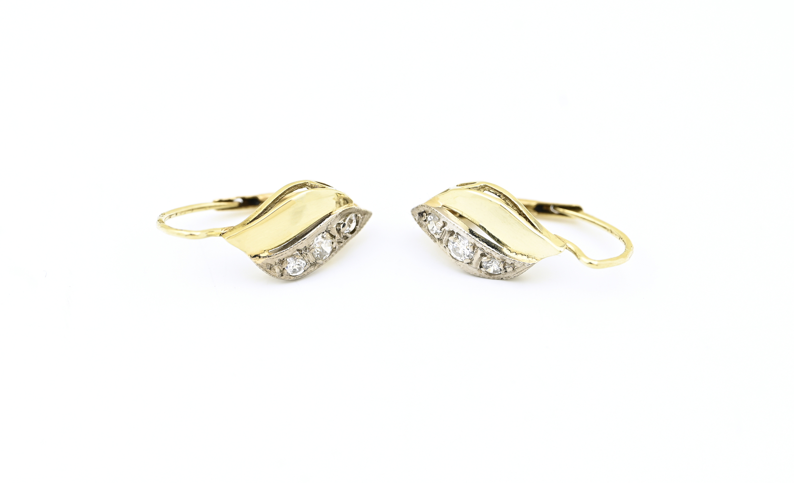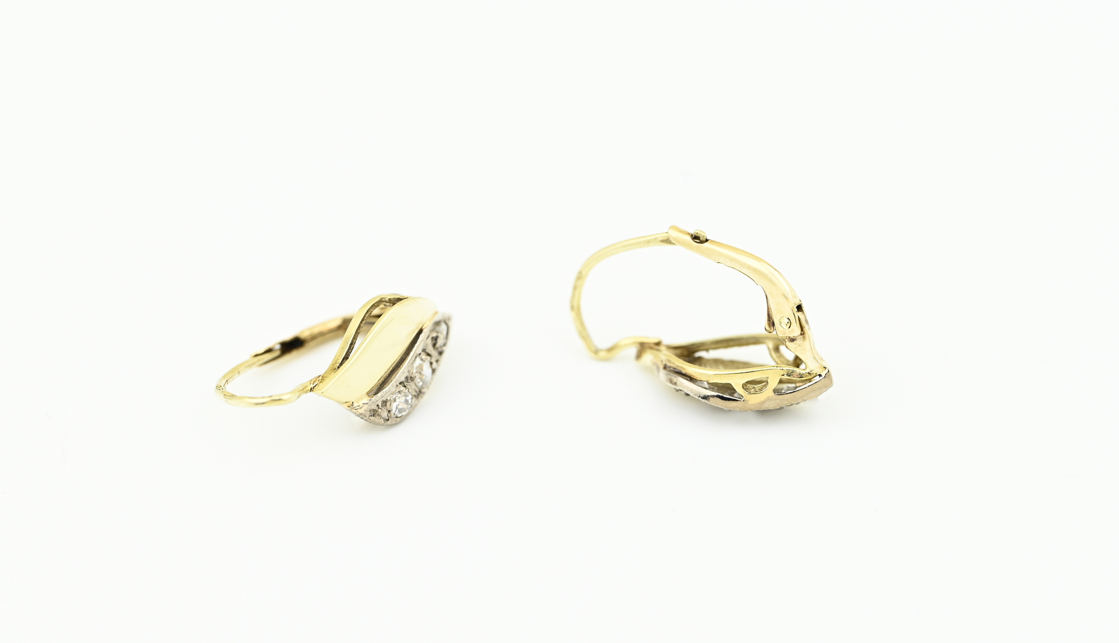 Zlaté náušnice, s bílým zlatem, zdobené zirkony.