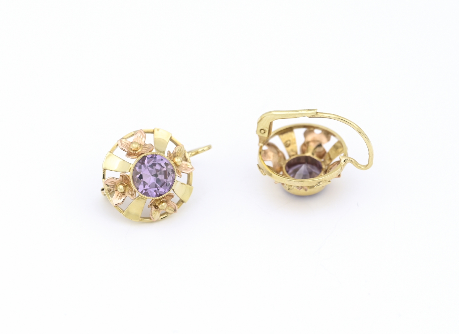 Zlaté náušnice, zdobené ametysty, s červeným zlatem.