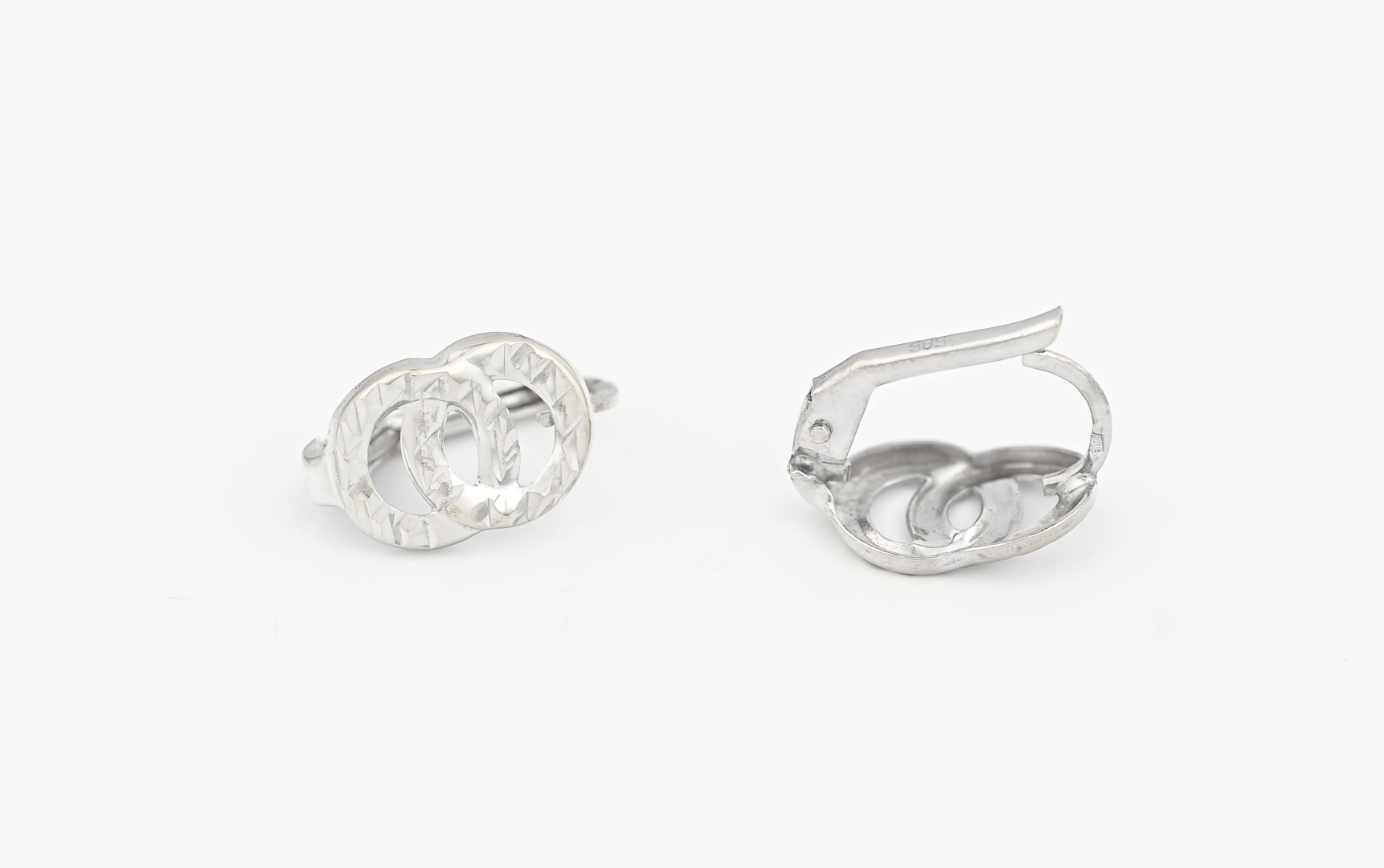 Zlaté náušnice, zdobené vzorem, z bílého zlata.