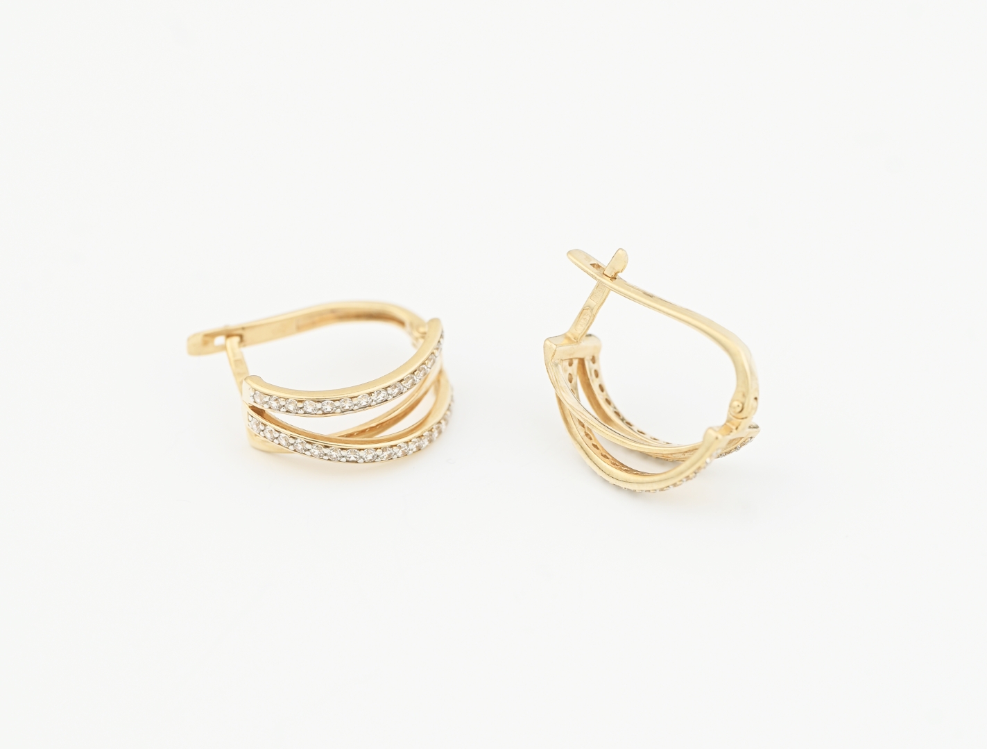 Zlaté náušnice, zdobené zirkony, z červeného zlata.