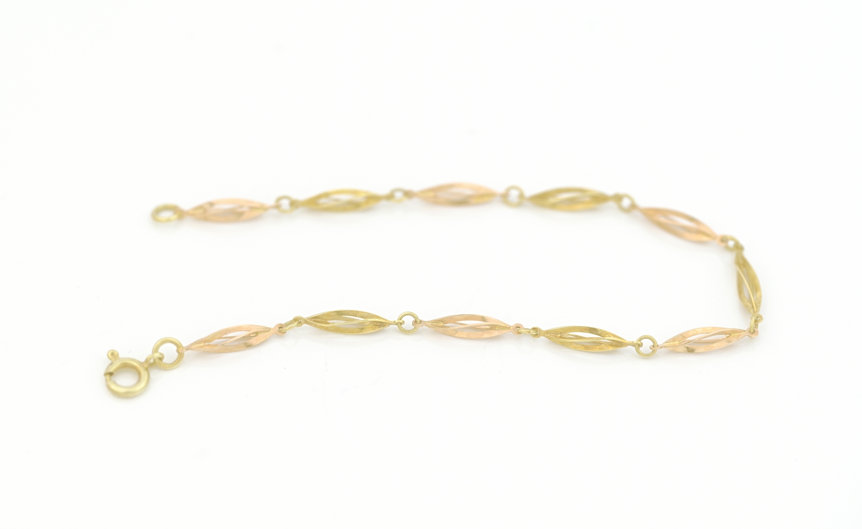 Zlatý náramek, motiv spirálky, s červeným zlatem.
