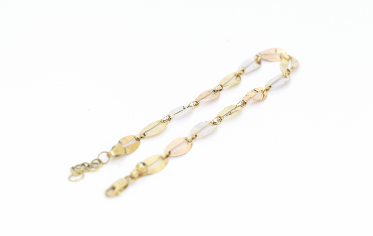 Zlatý náramek, plošky s kombinovaným zlatem.