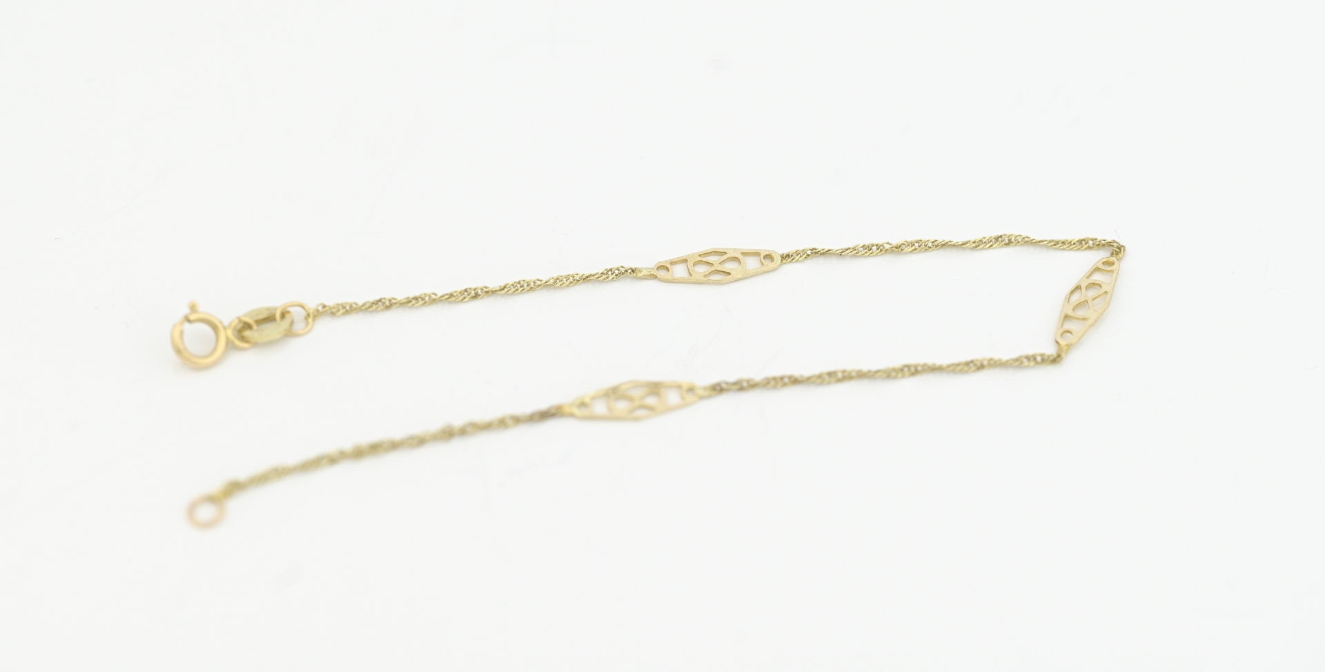Zlatý náramek, vzor singapur, s ozdobnými ploškami.