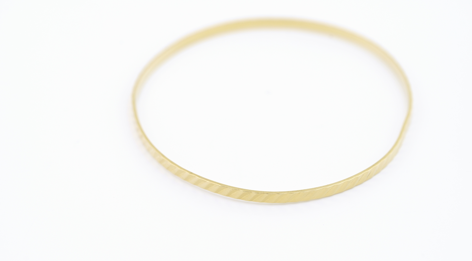 Pevný zlatý náramek kulatého tvaru se jemným vzorem na povrchu.