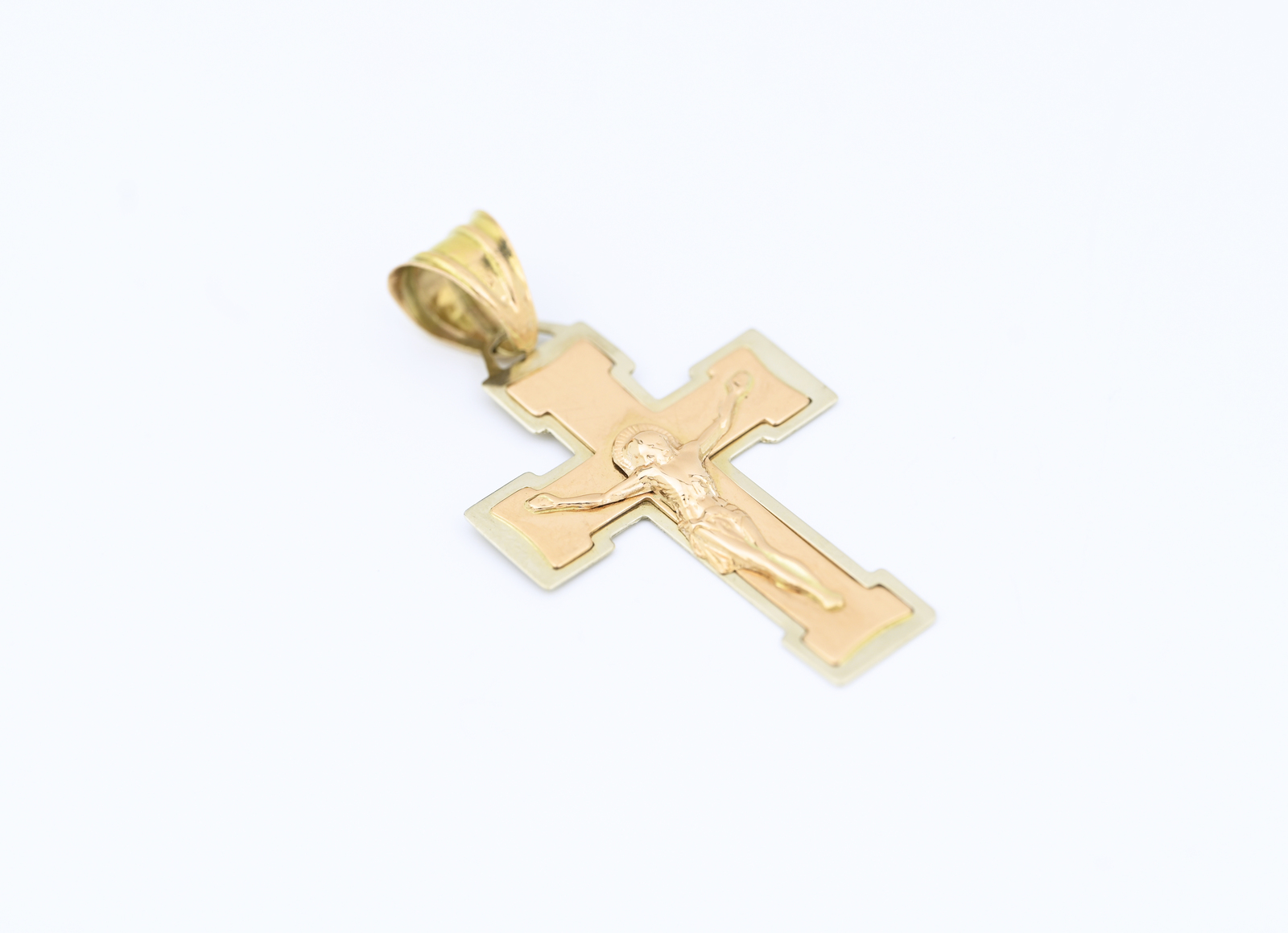 Zlatý přívěšek, křížek s ježíšem z červeného zlata.