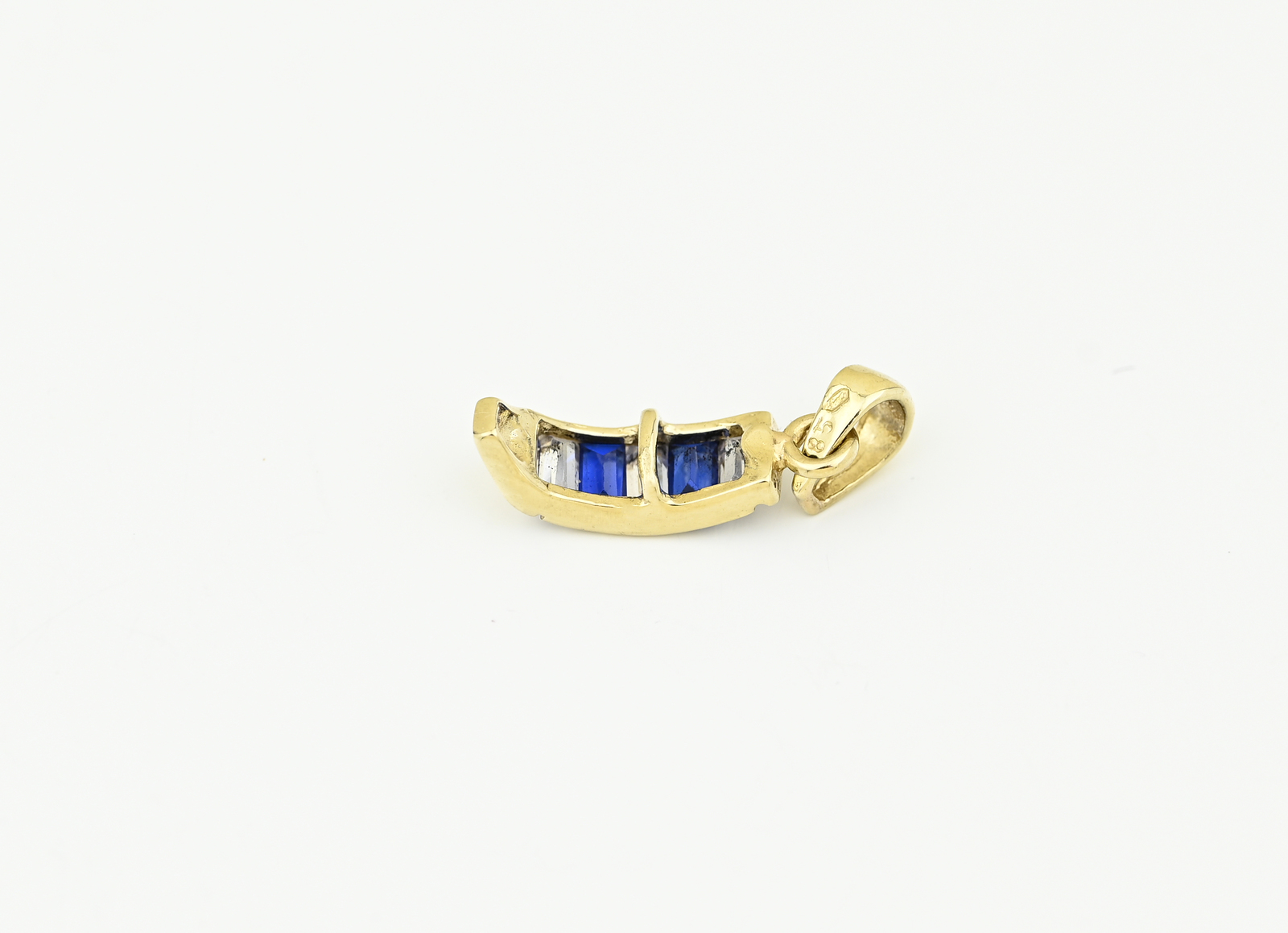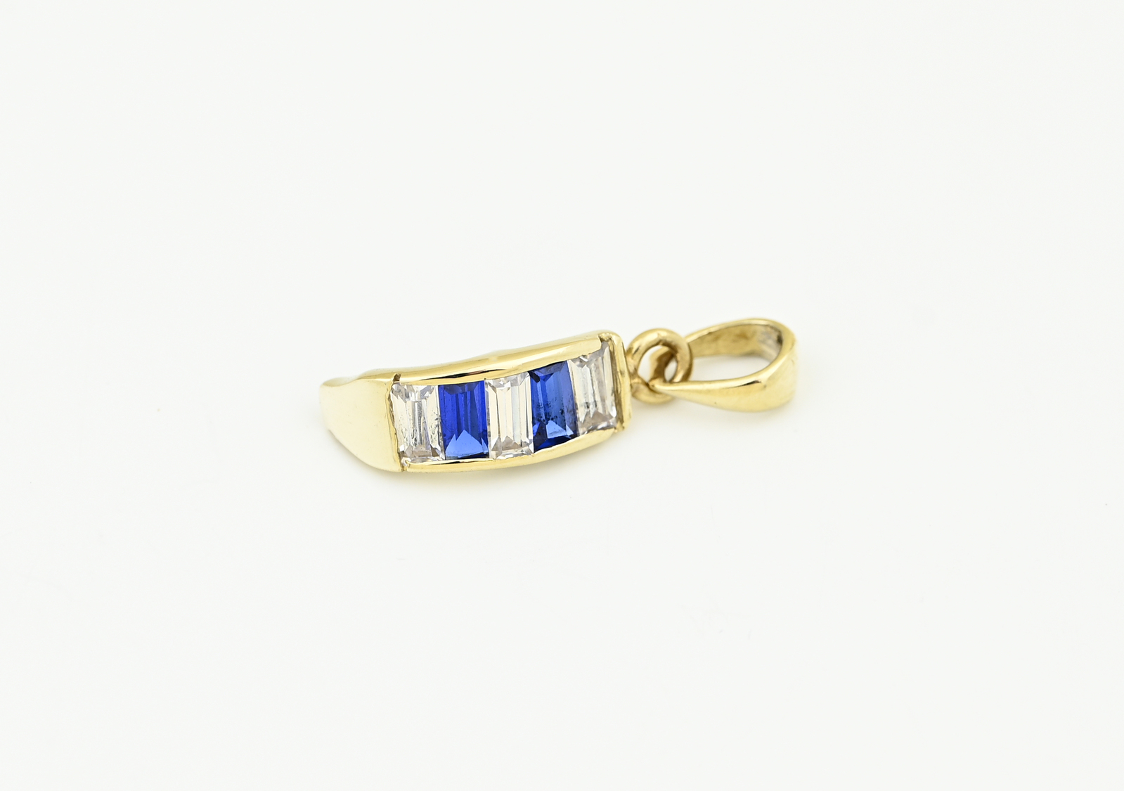 Zlatý přívěšek, s čirými a modrými kamínky.