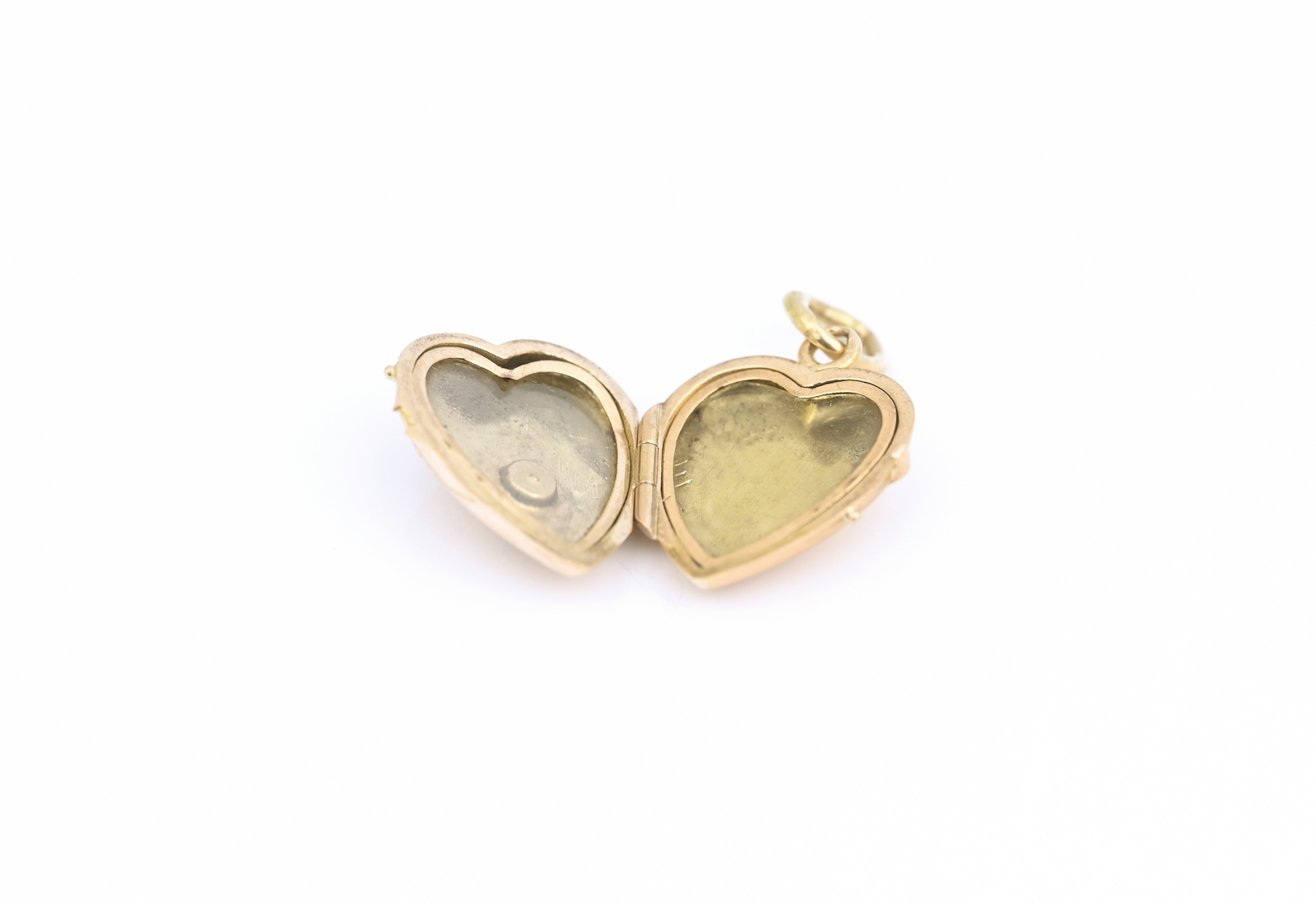 Zlatý přívěšek, zdobený medailonek ve tvaru srdce, z červeného zlata.