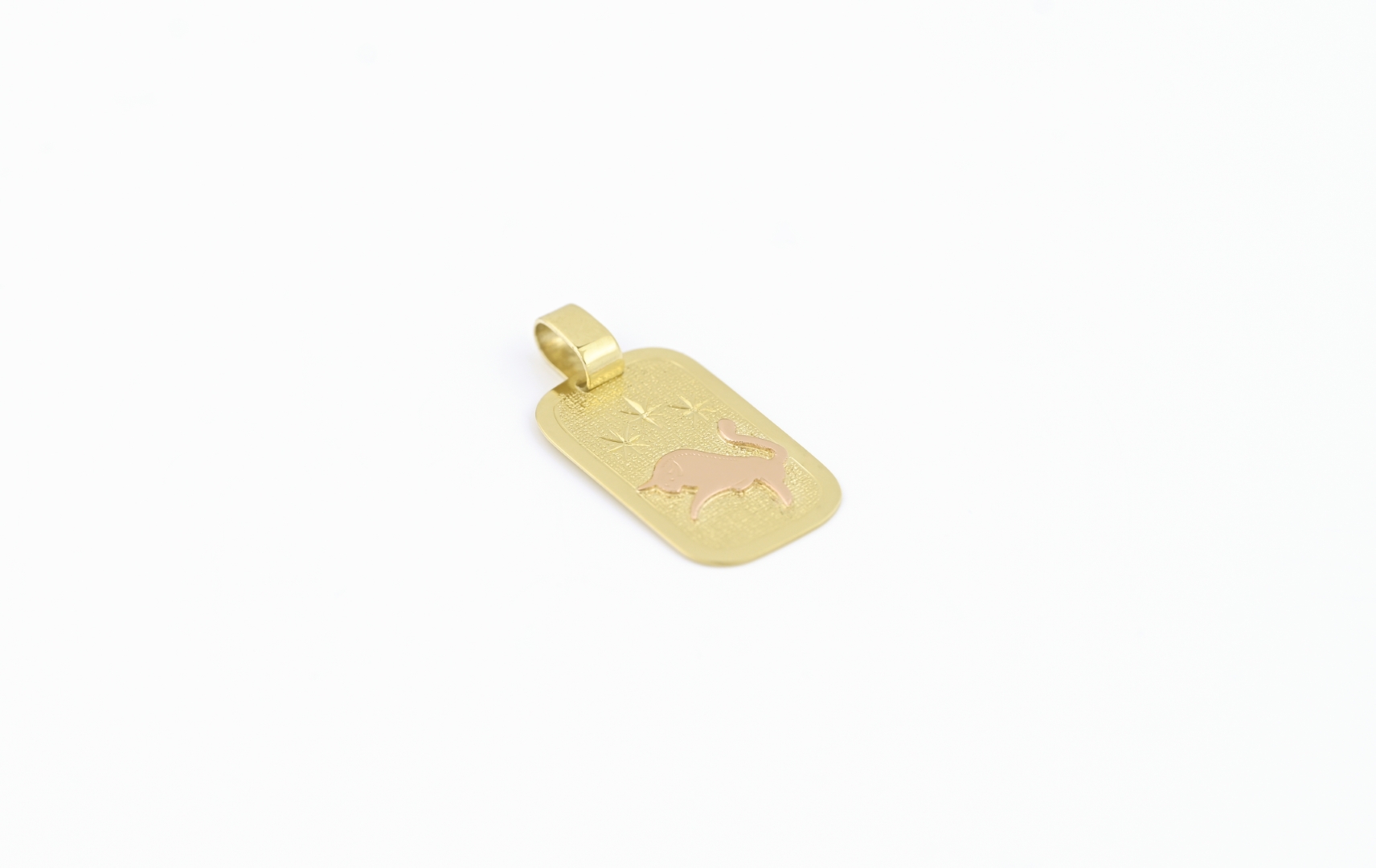 Zlatý přívěšek ve tvaru tabulky se znamením býka z červeného zlata.