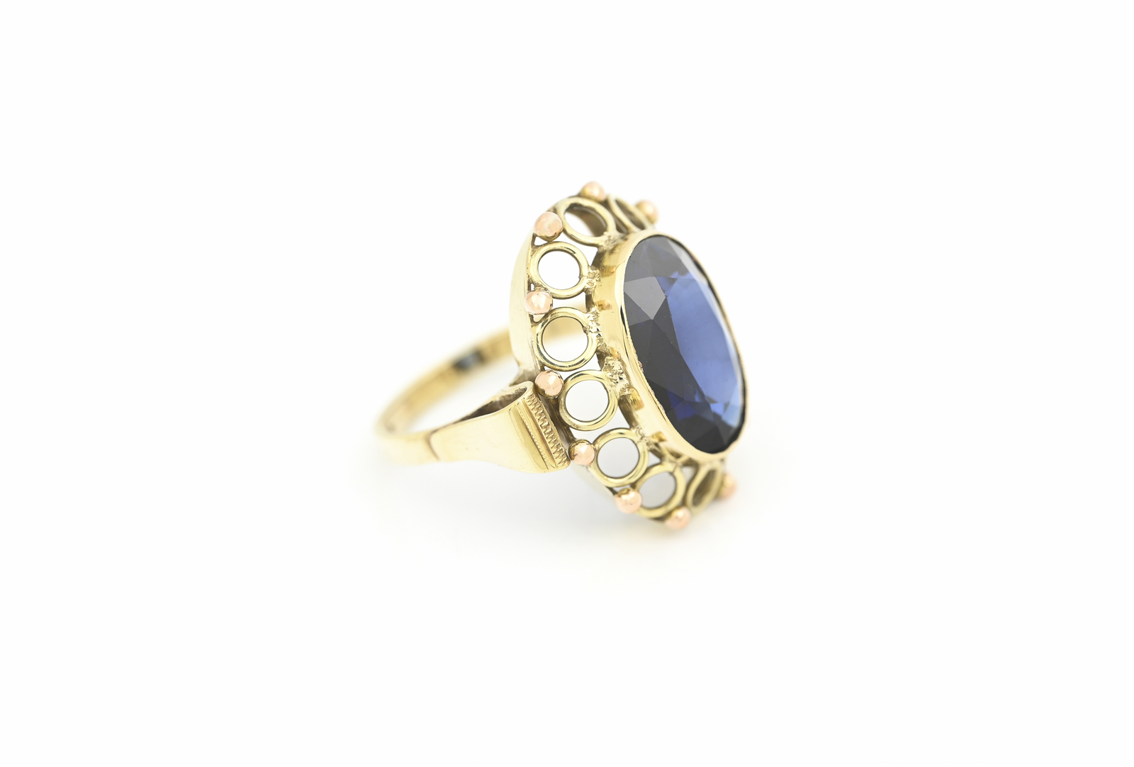 Zlatý prstem, zdobený safírem.