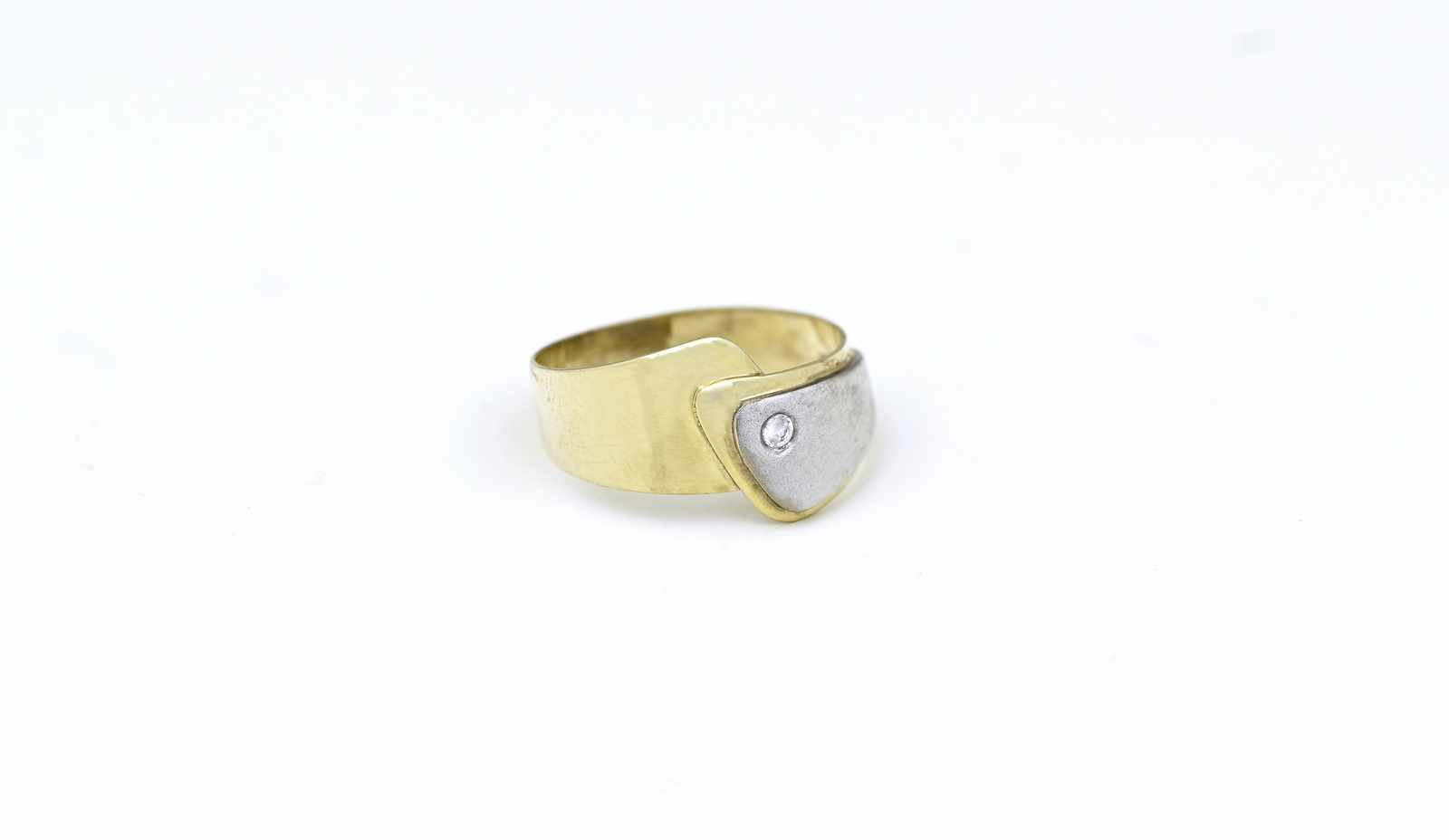 Zlatý prsten, kombinované zlato, zdobené zirkonem.