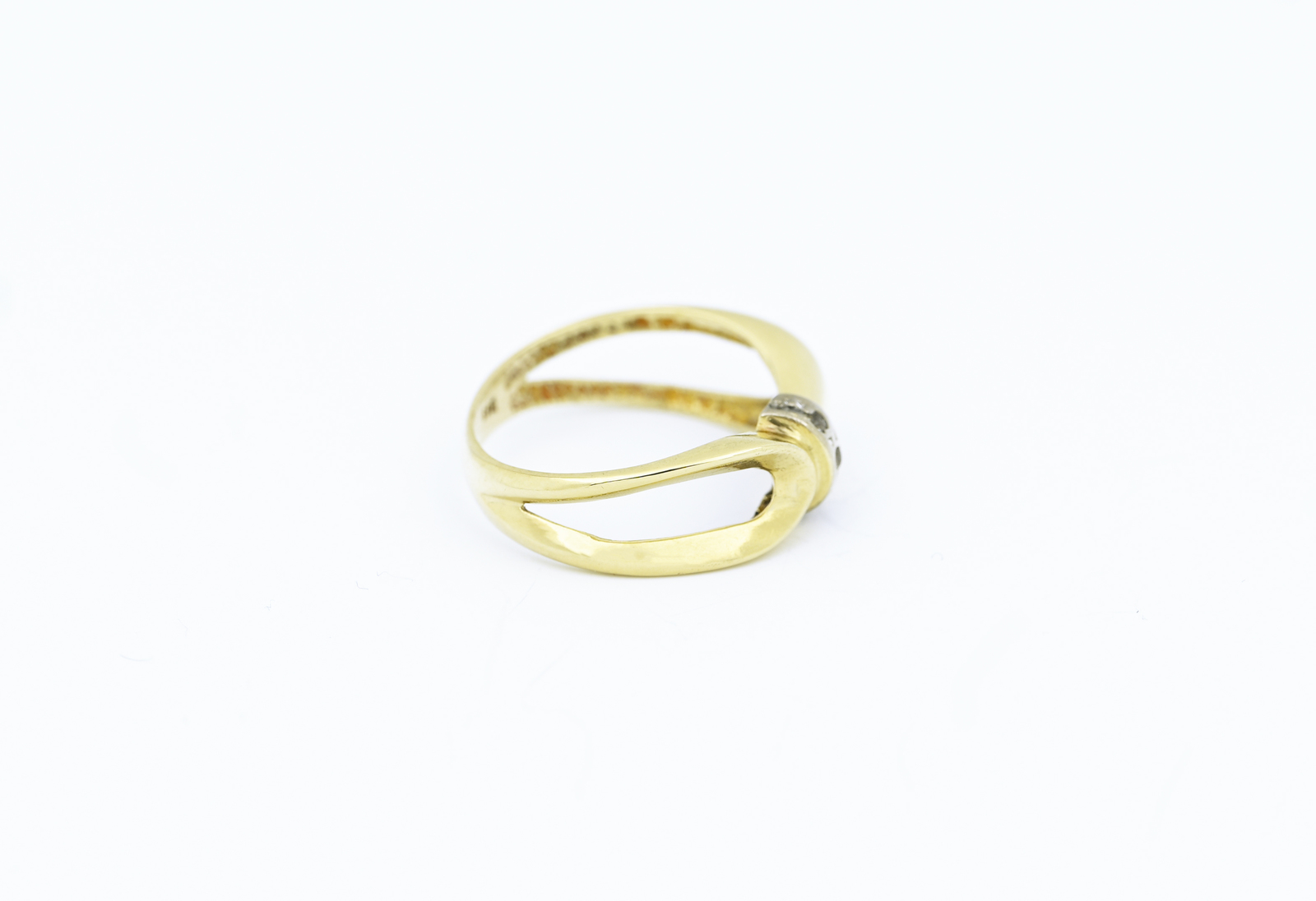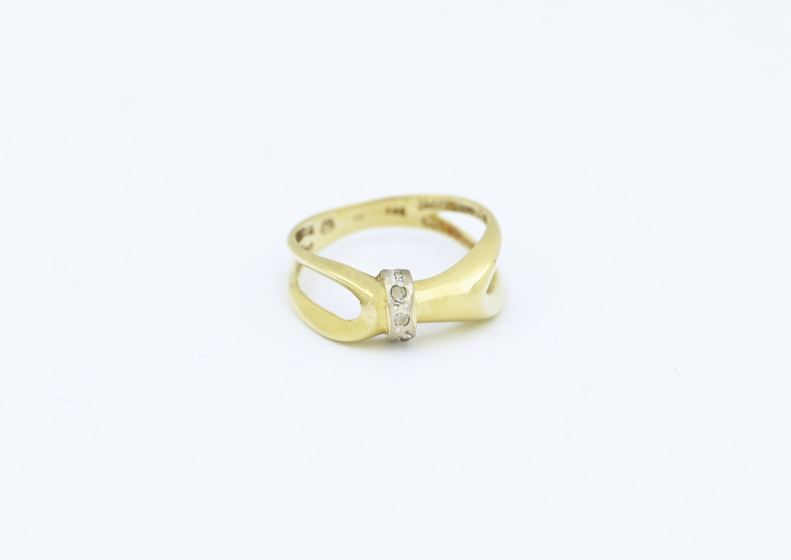 Zlatý prsten, moderní motiv, zdobený zirkony.