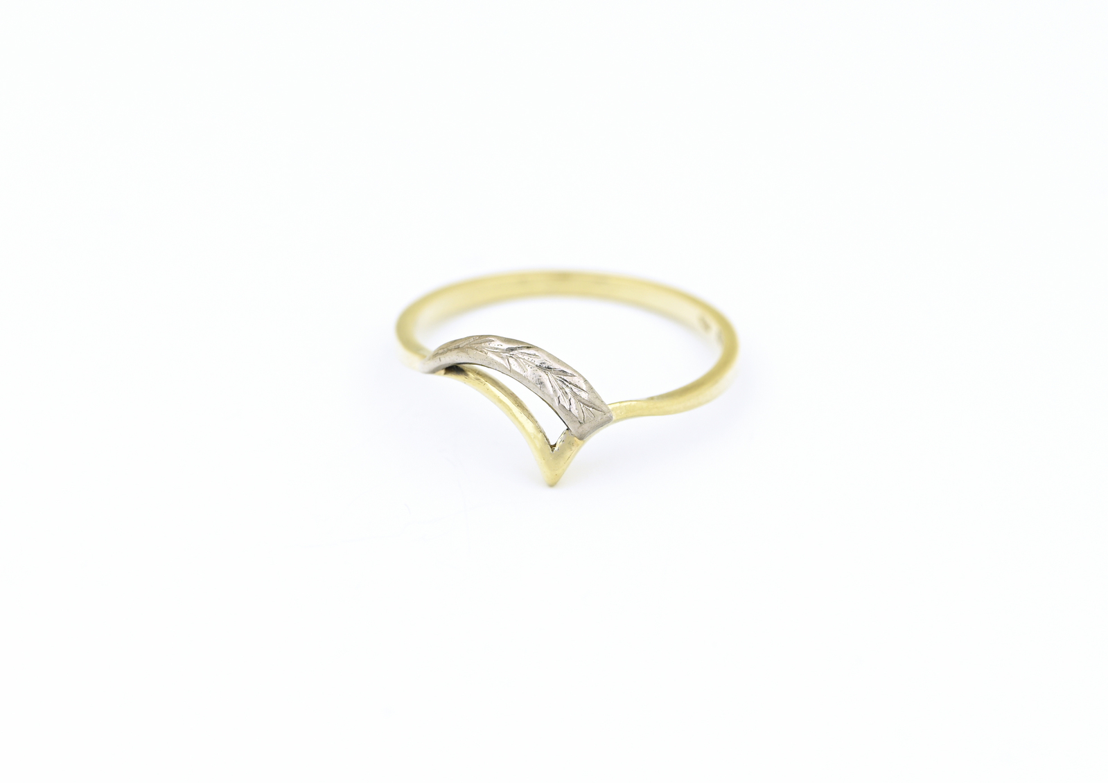 Zlatý prsten, motiv špička, s bílým zlatem.