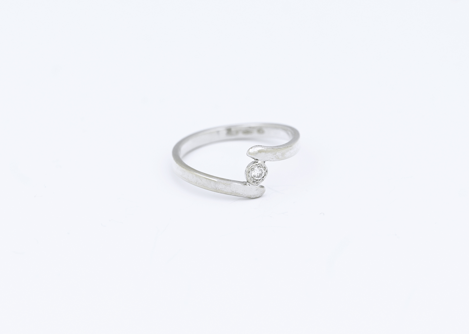 Zlatý prsten z bílého zlata, zdobený zirkonem.
