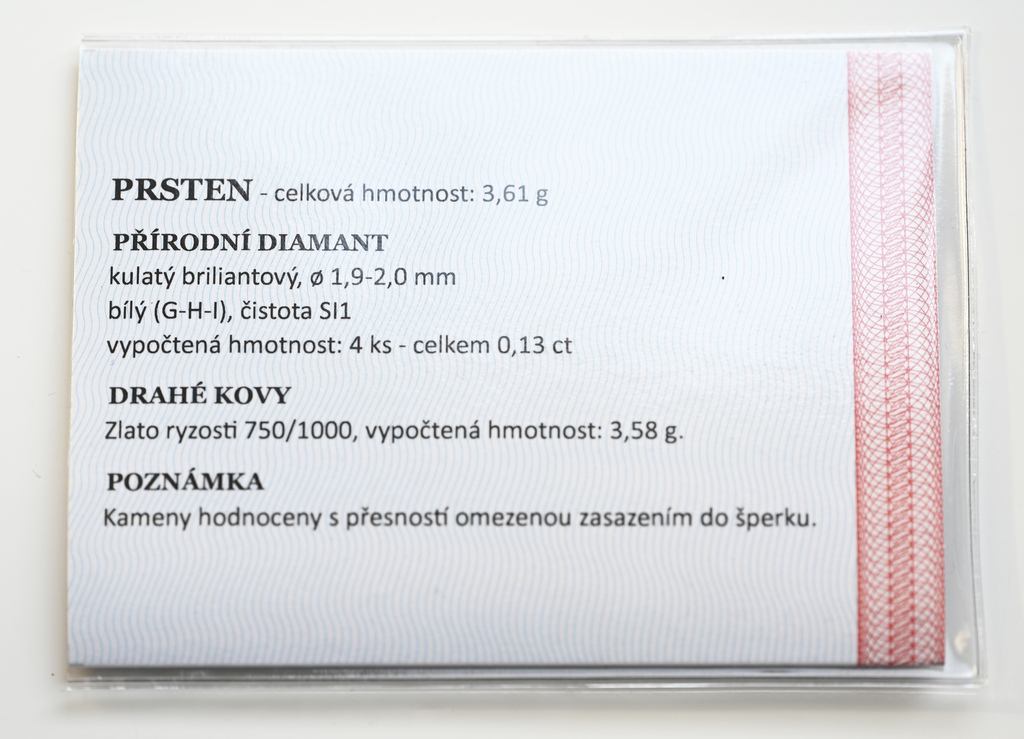 Zlatý prsten se čtyřmi diamanty