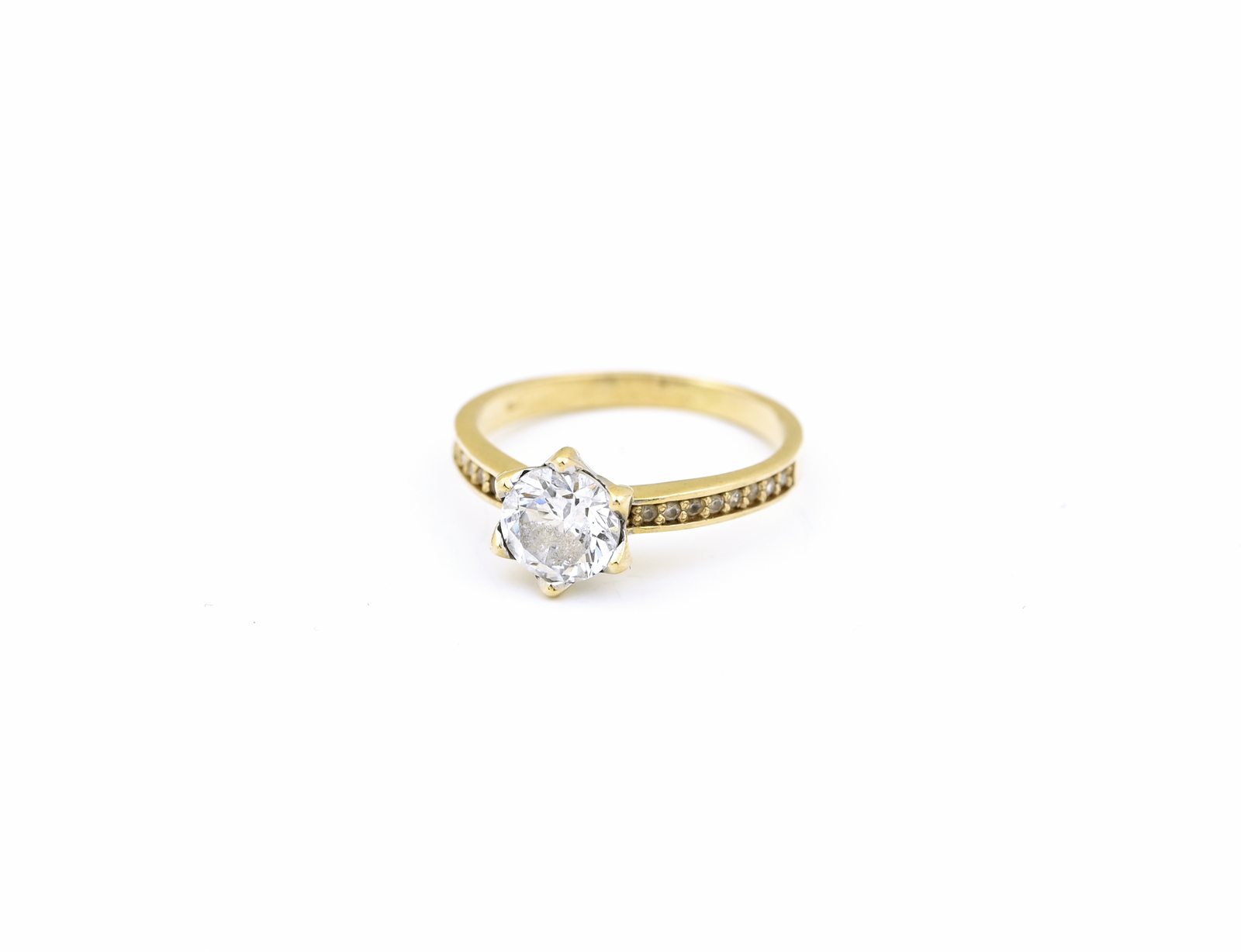 Zlatý prsten, zdobený zirkony, s korunkou.